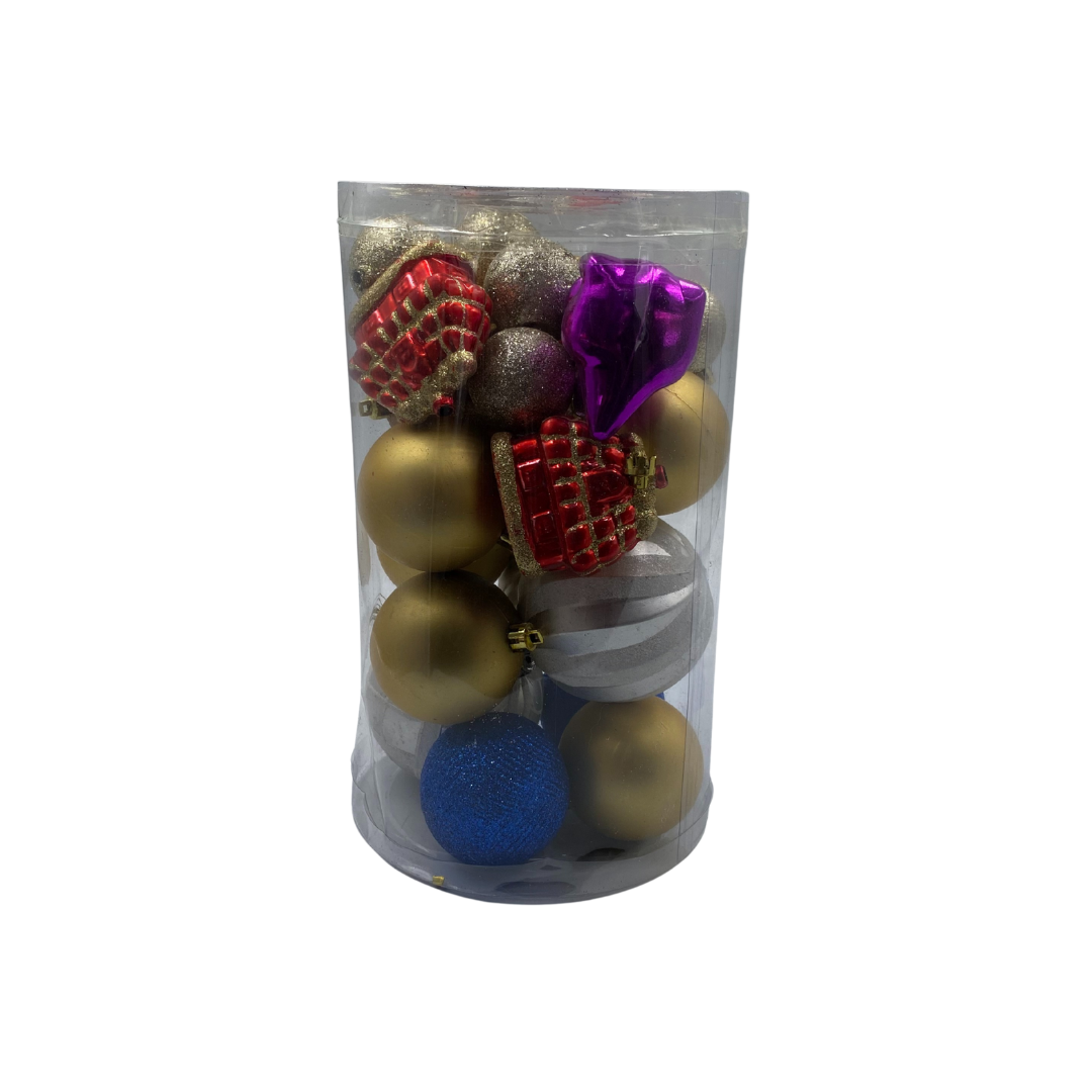 Decora tu hogar con estilo y alegría con este mix de esferas navideñas en diferentes formas, tamaños y colores surtidos. Cada pieza está fabricada en plástico resistente y ligero, ideal para crear una decoración única, original y llena de brillo. ¡Aprovecha esta oferta especial y renueva tu árbol con un toque moderno y festivo!